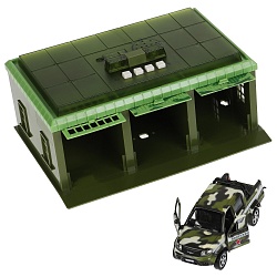 Входит целый комплекс для автомобилей: лифт, мойка, сервис, заправка, большие этажи, съезды. Гараж разборный: после игры его можно разобрать и убрать в коробку до следующей игры.