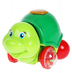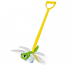 - Игрушка оснащена 4 широкими устойчивыми колесами со свободным ходом и ручкой с удобной перекладиной для рук.