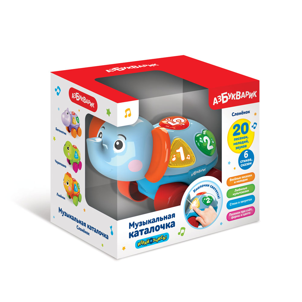 Музыкальная каталочка – Слоненок, свет и звук, Азбукварик, 28516-0.
