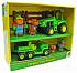 - Машинки набора – это сельскохозяйственная техника из линейки игрушек John Deere. Для нее характерно использование желто-зеленой цветовой гаммы, а прототипами машин являются настоящие тракторы и плуги.