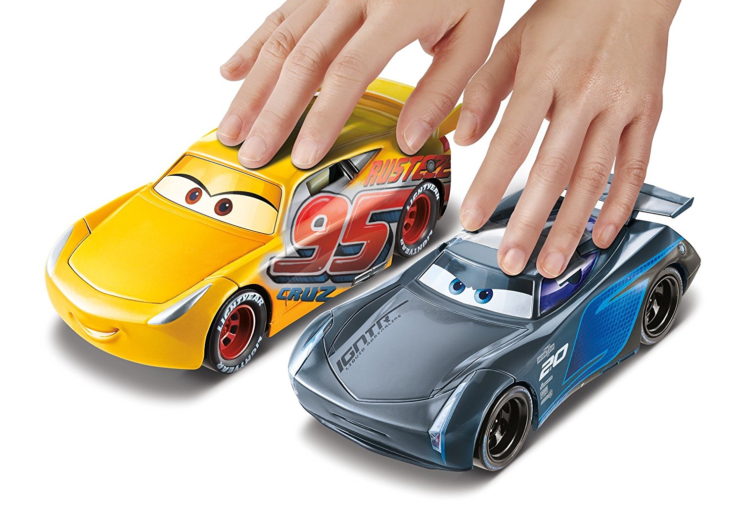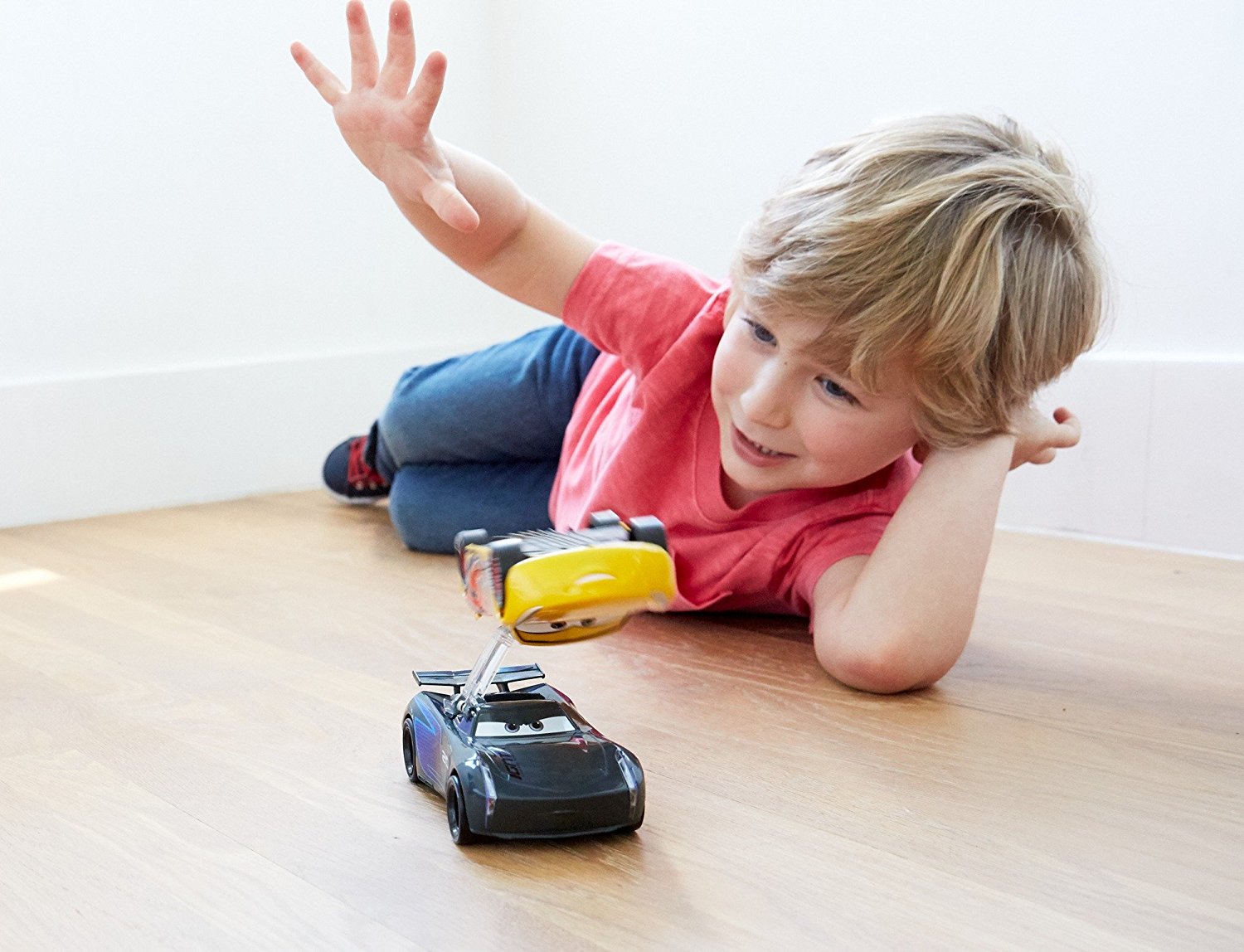 Для любителей различных трюков с машинками и эффектных гоночных заездов, данный набор станет шикарным приобретением. Два героя известного мультфильма студий Pixar Animation и Disney - Тачки, а точнее третьей его части, вновь схлестнулись на гоночном треке. Выполни трюк, который поможет новичку победить, или позволь выиграть этому непоколебимому и весьма неприятному персонажу – Джексону, ведь исход заезда зависит только от тебя.