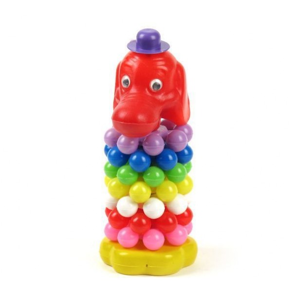 Пирамида «Собака» предназначена для малышей, которые только начинают своё знакомство с окружающим миром и исследуют его, изучая форму и цвета предметов. Пирамидка состоит из устойчивого основания со стержнем, на который надеваются колечки разных цветов. Колечки одинакового размера, поэтому нанизывать их можно с любой последовательности.