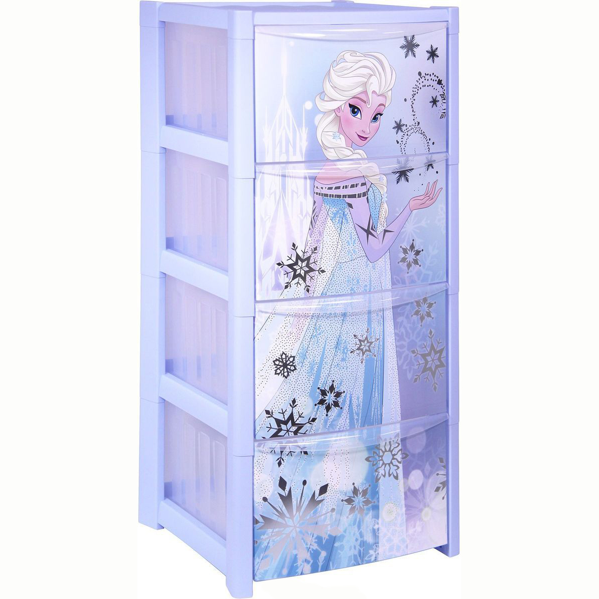 Комод голубого цвета, украшенный изображением Королевы Эльзы, не только позволит привести в порядок игрушки вашей малышки, но и внесёт в интерьер комнаты ребенка свою изюминку. С его помощью можно легко и просто объяснить и показать вашей девочке каким образом необходимо наводить порядок в игровой. Модель выполнена из экологически чистого пластика, абсолютно безопасного для малышей.