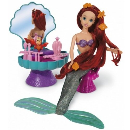 В комплекте: Ариэль (28 см.), туалетный столик с зеркалом, стул, аксессуары: расчески, флаконы духов, заколки, краб.