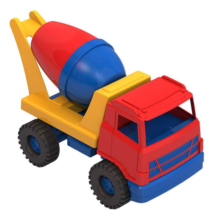 - Кабина автомобиля и смесительный барабан на специальной платформе исполнены в ярких цветах.