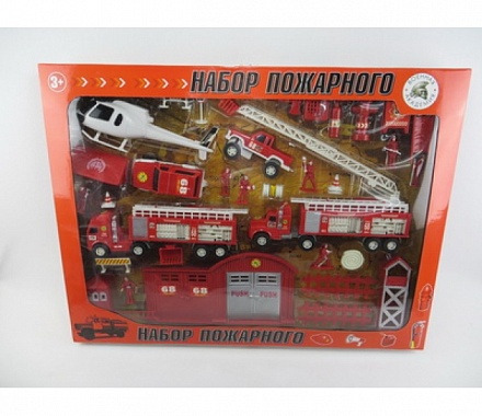 Комплектация: детали пожарной станции, 4 машины, вертолет, фигурки пожарных, дополнительные аксессуары.