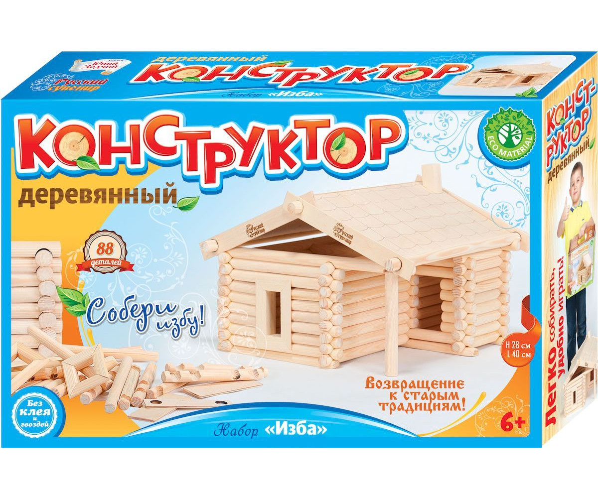 Благодаря элементам деревянного конструктора от российской компании «Русский сувенир», дети смогут познакомиться с принципами искусства древних зодчих, которые без единого гвоздя возводили грандиозные архитектурные сооружения, которые считаются в наше время памятниками архитектуры. Ребёнок сможет собрать уменьшенную копию русской бревенчатой избы, которую в дальнейшем можно использовать для игр.