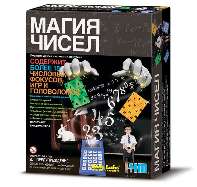 «Магия чисел» - игровой набор от компании 4М, который создан специально для любознательных детей. В красочно оформленной коробке находятся множество аксессуаров, благодаря которым дети смогут познать магию чисел, глубже познать математику и удивить своих домочадцев или друзей интересными фокусами.