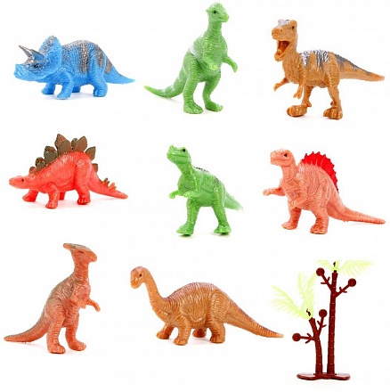 Комплектация: 8 фигурок динозавров, пальма.