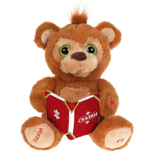 Малыш обрадуется такому очаровательному мишутке с коричневой мягкой шёрсткой и текстильной книжкой в лапках. Мишка совсем как настоящий - качает головой, открывает и закрывает рот, когда рассказывает сказки или поёт песенку. Игрушка станет для ребёнка добрым другом, который будет не только помогать ему укладываться спасть, но и сопровождать его в гостях или поездках.