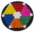 - Игрушка представлена шестигранными элементами 7 цветов на ножках, из которых на круглом основании с отверстиями можно выкладывать различные узоры или фигуры.