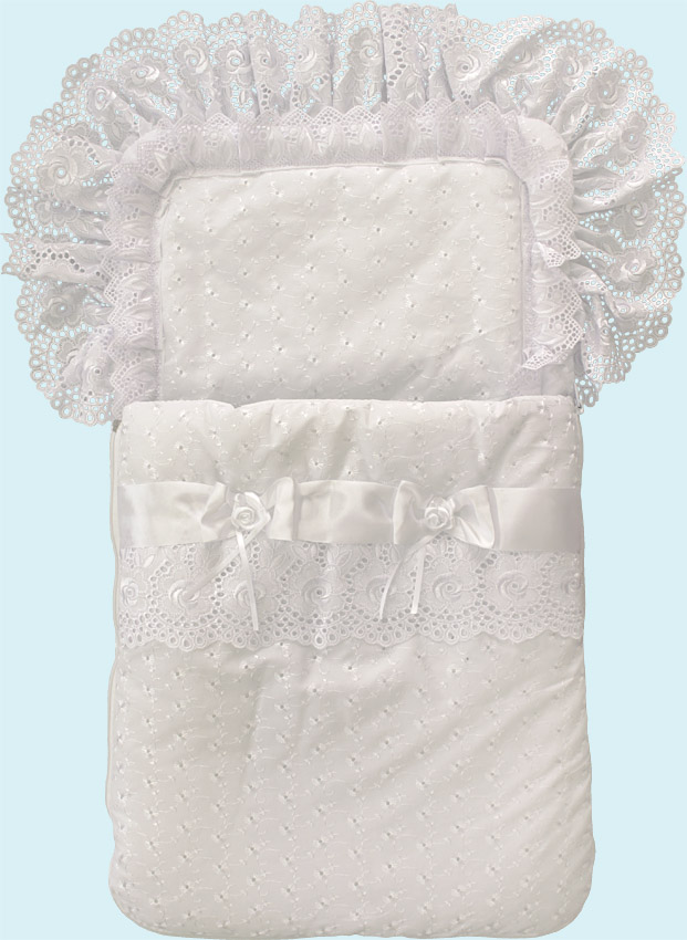 - Кружевной уголок позволит закрыть личико ребёночка от потока свежего воздуха и лишних взглядов окружающих.