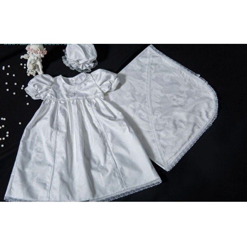 Комплект: платье крестильное, чепчик, пеленка с уголком.