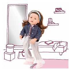 Очаровательная кукла Gotz Эмма растопит сердечко любой девочки! Эмма одета в лёгкое платье нежно-розового цвета с цветочным принтом. Оно подпоясано полосатым ремешком, который слегка подчеркивает талию Эммы. На ногах куколки красуются универсальные белые кеды на шнуровке, из-под обуви выглядывают модные носочки с люрексом. И завершает образ стильная летняя шляпка. Надо скорее собирать подружек и отправляться на прогулку, чтобы покрасоваться в таком милейшем наряде перед всеми.