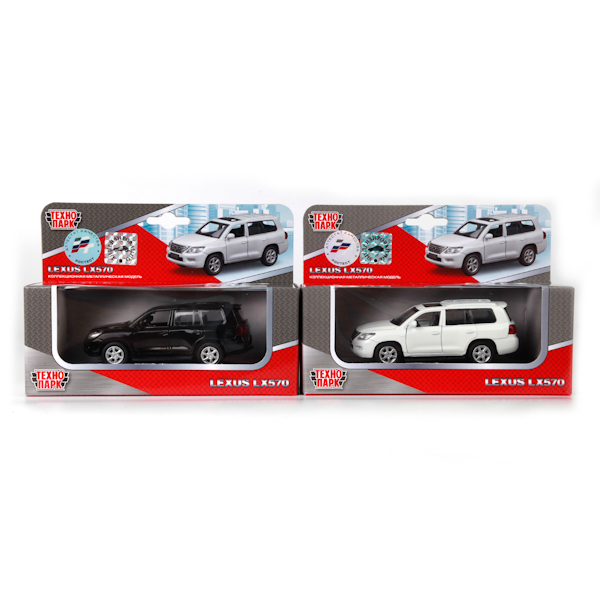 Коллекционная модель от российской компании «Технопарк» является точной уменьшенной копией реального автомобиля Lexus LX570. Масштабная модель выполнена из металла и оснащена инерционным механизмом, позволяющим запускать её на приличные расстояния. Двери модели открываются, поэтому можно рассмотреть, что автомобиль выполнен с высоким уровнем детализации как снаружи, так и внутри.
