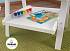 - Под досками предусмотрены полочки для размещения аксессуаров, а для творений детей есть вместительная поверхность с бортиками.