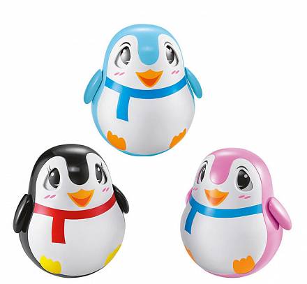 Развеселить даже самого серьезного малыша получится такой простейшей игрушкой, как неваляшка, особенно если она выполнена в виде забавного пингвиненка. Его привлечет характерный при движении игрушки звук, а также ее подвижные глаза и привлекательный внешний вид.
