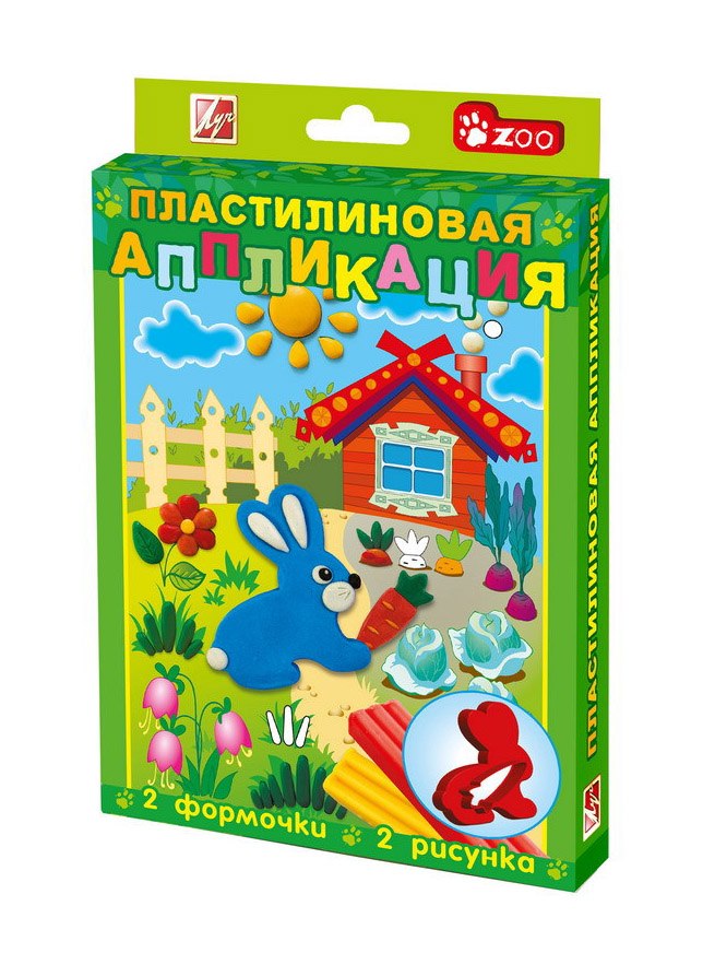 В комплекте: 2 рисунка, пластилин 6 цветов, стек, 2 формочки.