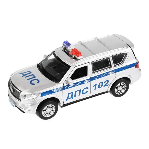 Модель Полиция Infiniti QX80 свет-звук 12 см двери и багажник открываются металлическая инерционная, Технопарк, QX80-12SLPOL-SR.