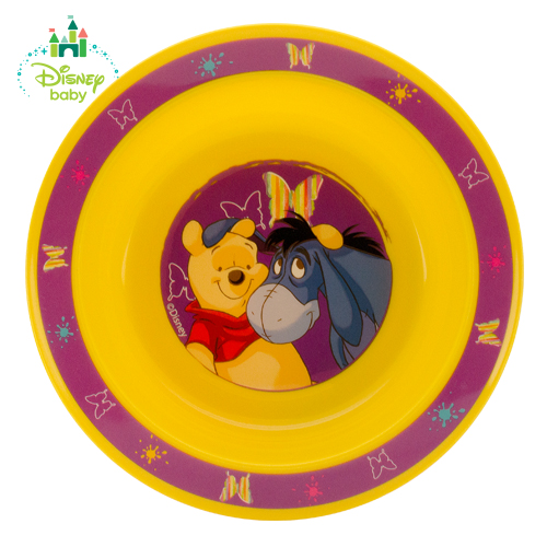 - Тарелка круглой формы имеет насыщенный цвет и украшена цветным изображением обожаемого многими детьми медвежонка Винни из популярного мультфильма.