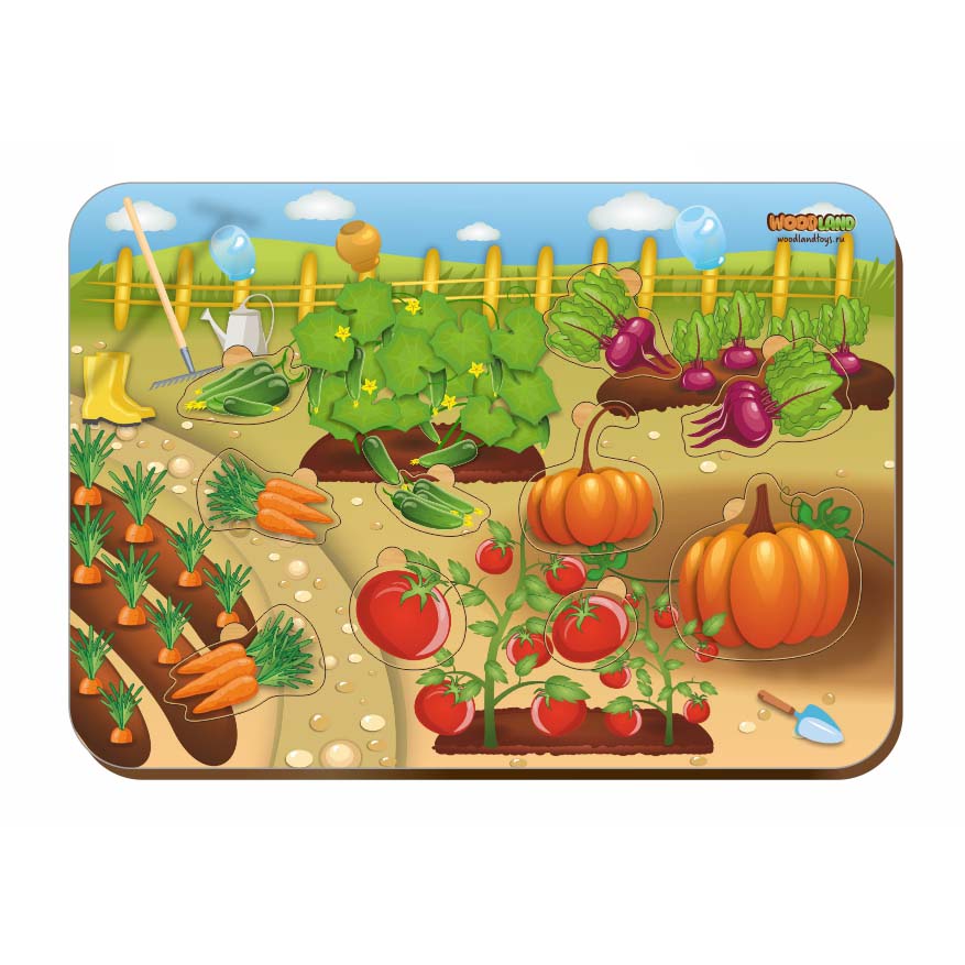 Какой богатый урожай получится собрать с этого деревянного огорода от Woodland, ваш ребенок поймет в процессе игры, когда один за другим он начнет извлекать из рамки овощи. Таким образом он выучит названия произрастающих на огороде продуктов питания, а также сможет однозначно определить их в реальной жизни.