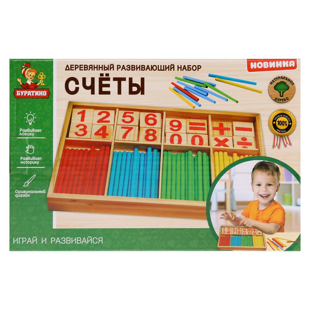 Деревянный развивающий набор - Счеты, Буратино, HLJ171211-15-R.