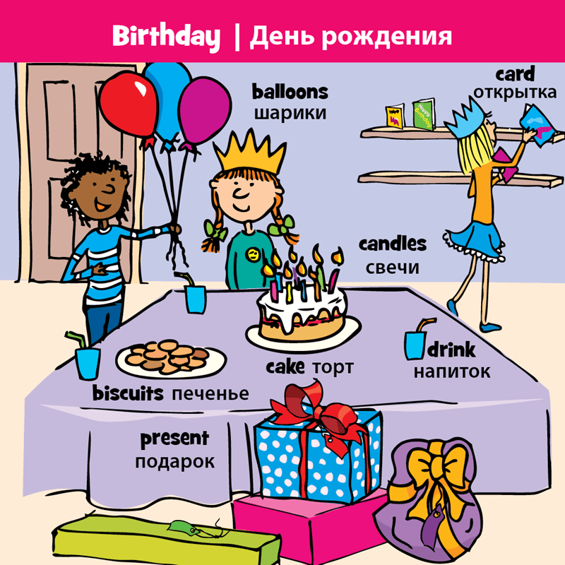 - Все карточки имеют красочные картинки с подписями на русском и английском языках. Они ориентированы на наиболее популярные темы: еду, животных, семью, растения и т. д.