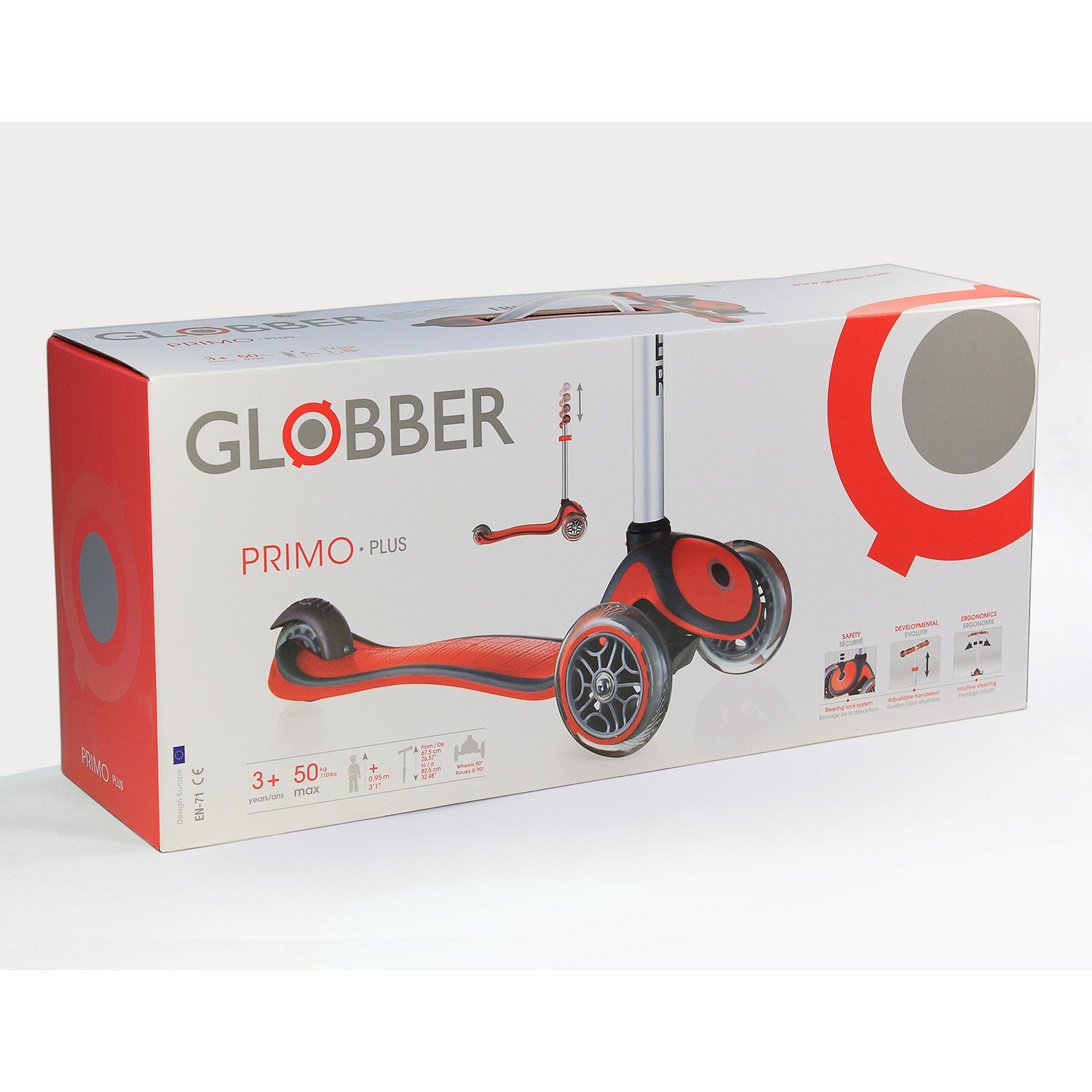 Самокат Globber Primo Plus, красный, Globber, 440-102.