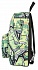- Дизайн рюкзака выполнен из текстиля с ярко-салатовым геометрическим узором и черными вставками на спинке.