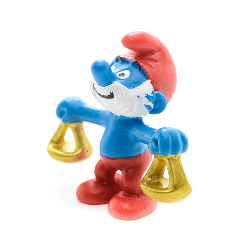 Этот смешной Смурфик не играет с золотистыми гирями, а изображает с их помощью весы. Ведь именно этот знак Зодиака гномик из популярного мультфильма выбрал для тематической вечеринки, на которую он собирается отправиться, чтобы встретить там своих друзей в разнообразных забавных образах и костюмах.
