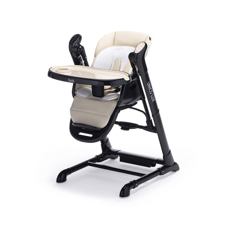 UNICO LUX от бренда Nuovita — это стульчик для кормления 2в1, который можно использовать как шезлонг и качели для грудничка. Он пригодится с самого рождения: шезлонг расположен высоко от пола, сиденье раскладывается в полулежачем положении, электронный механизм укачивает ребенка и проигрывает музыкальные композиции. Когда малыш подрастет, детский стульчик для кормления позволит усадить его за один стол со взрослыми или отдельно, чтобы он мог кушать на специальном столике, рисовать или играть.