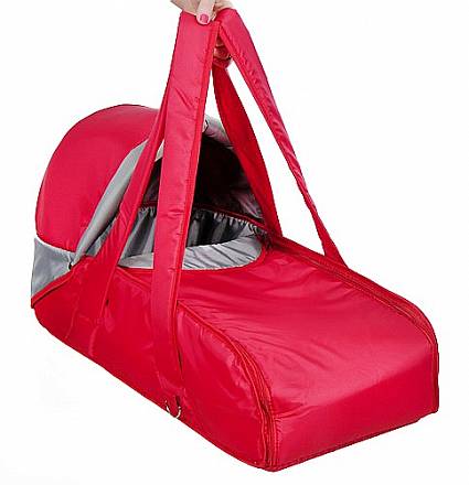 - Практичная и комфортная люлька-кокон ярко-красного цвета сможет заметно облегчить передвижения новоиспеченных родителей с ребенком.