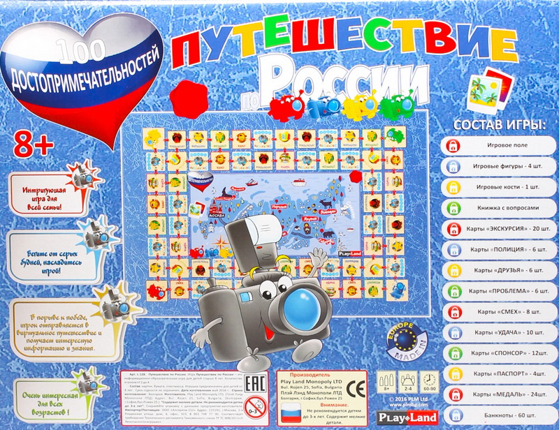 - Игроки перемещаются по игровому полю, отвечают на вопросы, узнают интересные факты, а также знакомятся с достопримечательностями нашей страны.