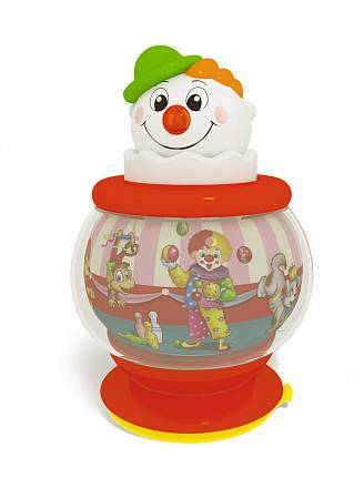 - Игрушка представляет собой классическую юлу, выполненную в виде весёлого клоуна.