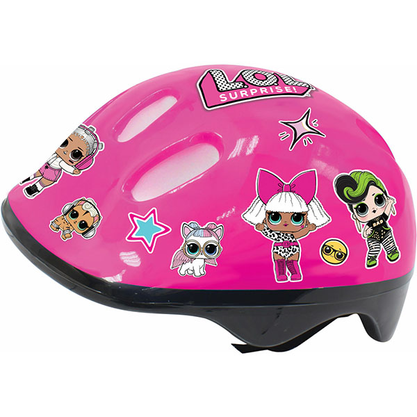 Данный шлем будет особенно гармонично смотреться в совокупности с велосипедом или самокатом, украшенным в стиле ЛОЛ. Также аксессуар идеально дополнит комплект защиты соответствующей расцветки и будет радовать начинающую спортсменку своей яркостью и красотой.