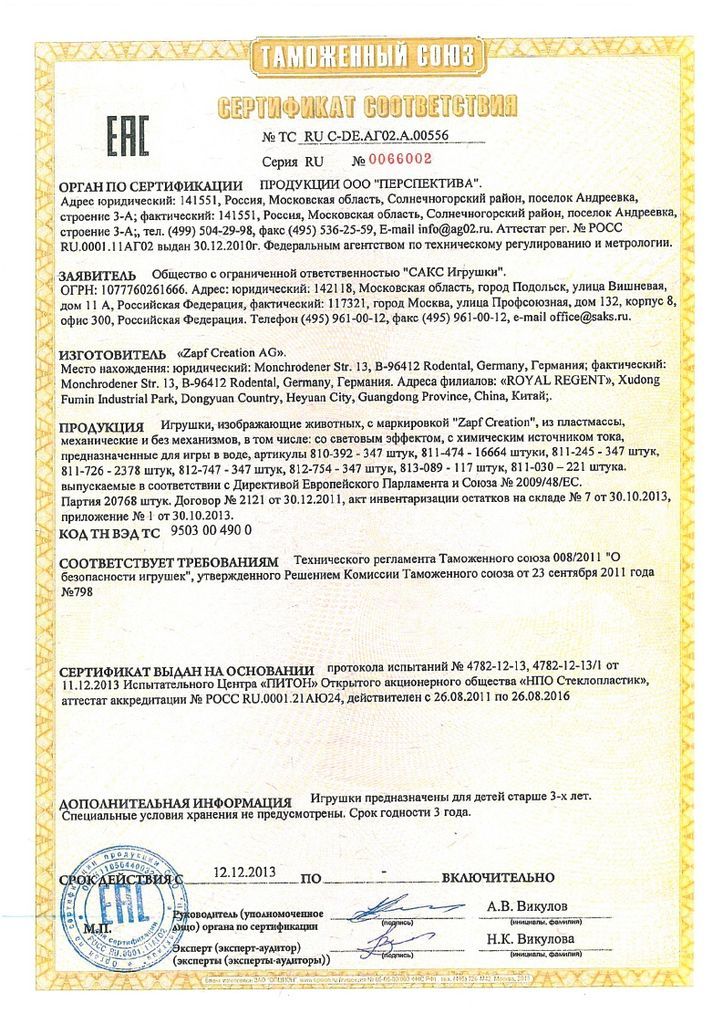 Сертификаты на продукцию Zapf